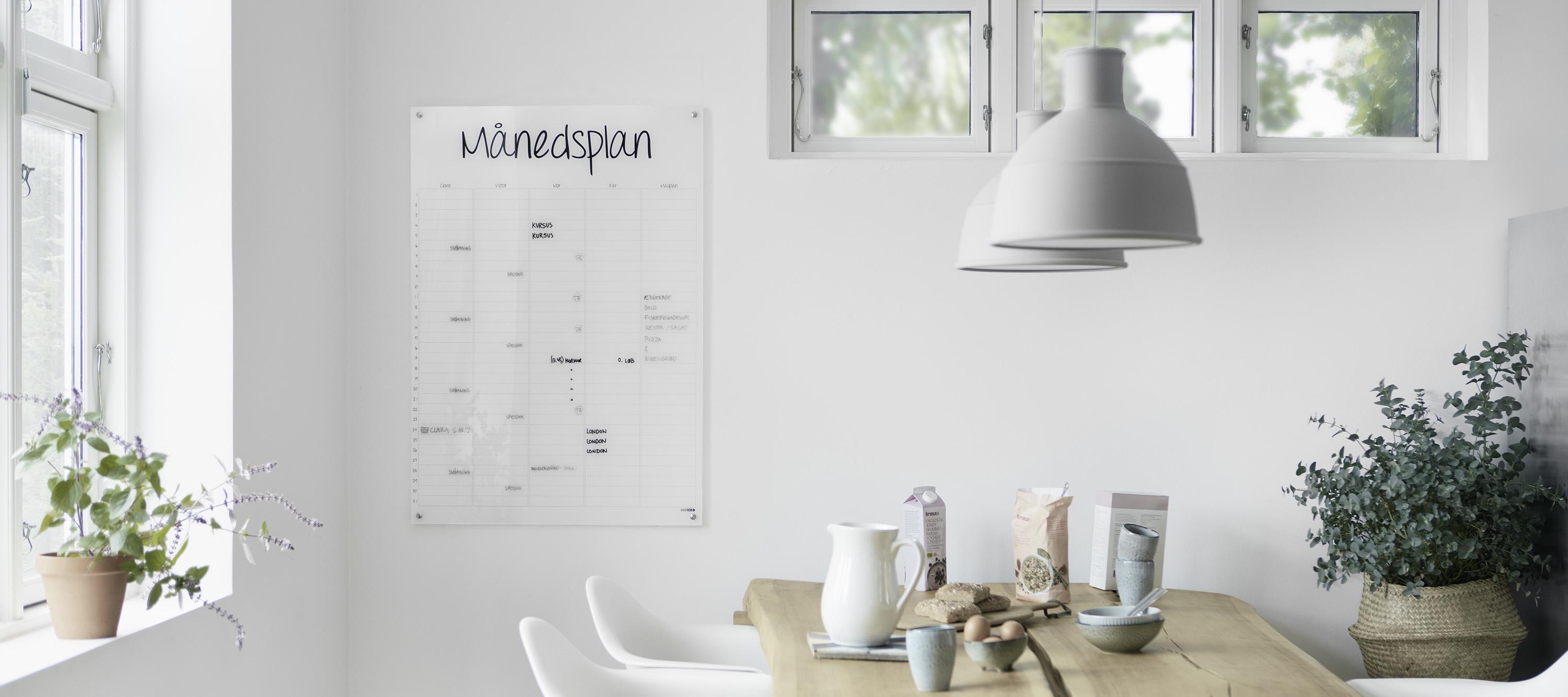 Du skriver på kalenderen med whiteboard tusch, som nemt viskes ud.